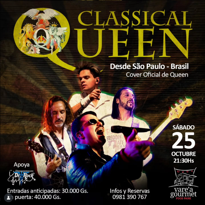 El próximo sábado 25 de octubre a partir de las 21:30, Vare´a Gourmet Food Park será escenario de una noche cargada de rock, nostalgia y energía pura con la presentación de Classical Queen, el mayor tributo brasileño a la legendaria banda Queen.