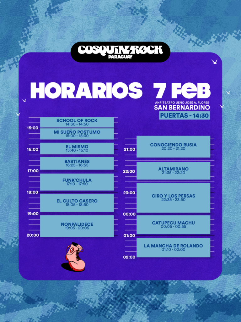 El Cosquín Rock Paraguay 2026 promete una de las jornadas musicales más convocantes del verano. El festival se celebrará el sábado 7 de febrero, desde las 14:30, en el Anfiteatro José Asunción Flores de San Bernardino, con artistas internacionales y una fuerte presencia local.